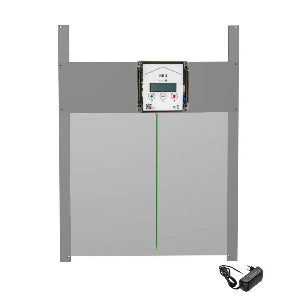 Die HK3 öffnet und schließt automatische Klappen am Geflügel- und Hühnerstall, Voliere oder Kleintiergehege per Dämmerung oder Zeit oder in Kombination von beiden.