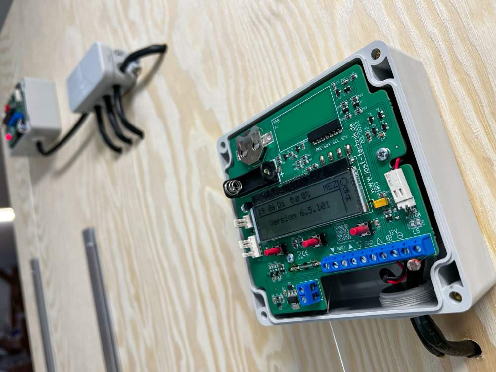Die Batterie dient als Ausfallschutz bei Spannungsverlust. Fällt die Hauptversorgung aus, schließen alle Geräte mit Hilfe der Batterien die Klappen.
