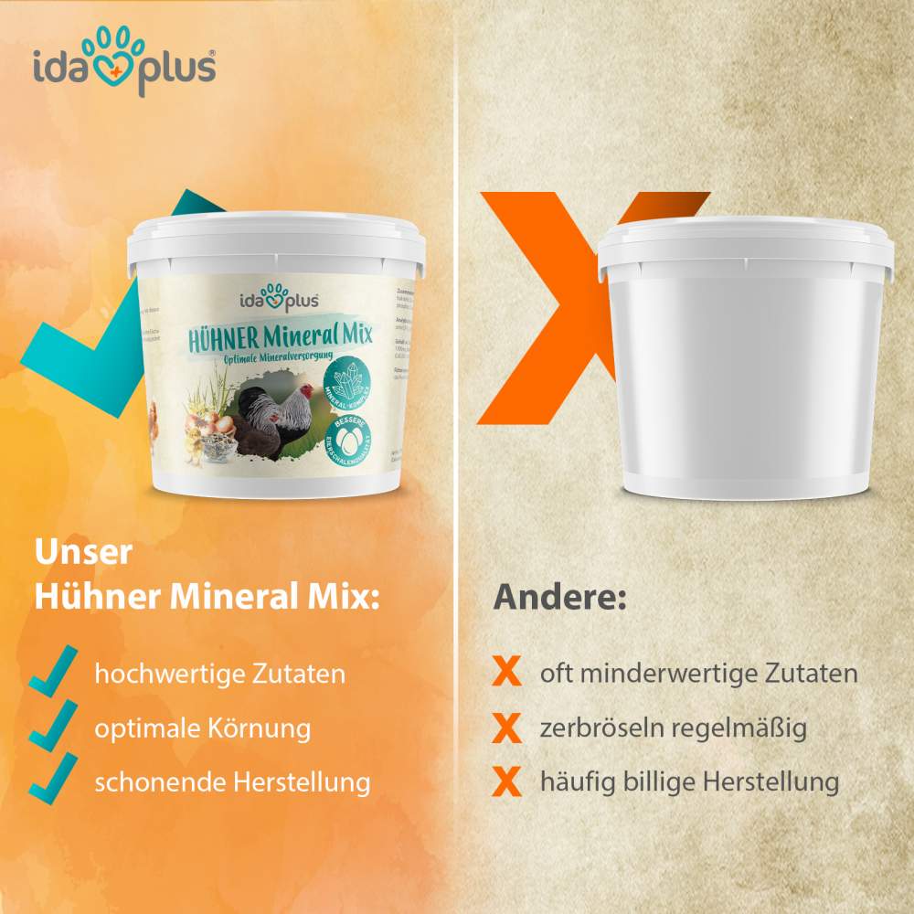 Dank der speziellen Zusammensetzung und der feinen Struktur ist IdaPlus Hühner-Mineral Mix auch für Küken geeignet. Für frisch geschlüpfte Küken kann die Mineralstoffmischung ohne weiteres in einem Mörser noch feiner zerkleinert werden.