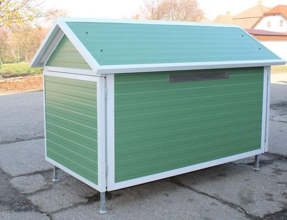 Die Wände bestehen aus 40 mm Sandwichplatten in RAL 6011 Resedagrün, die Kanten in RAL 9010 Reinweiß ( verzinkte Stahlkonstruktion Aufpreis 250,00 € )