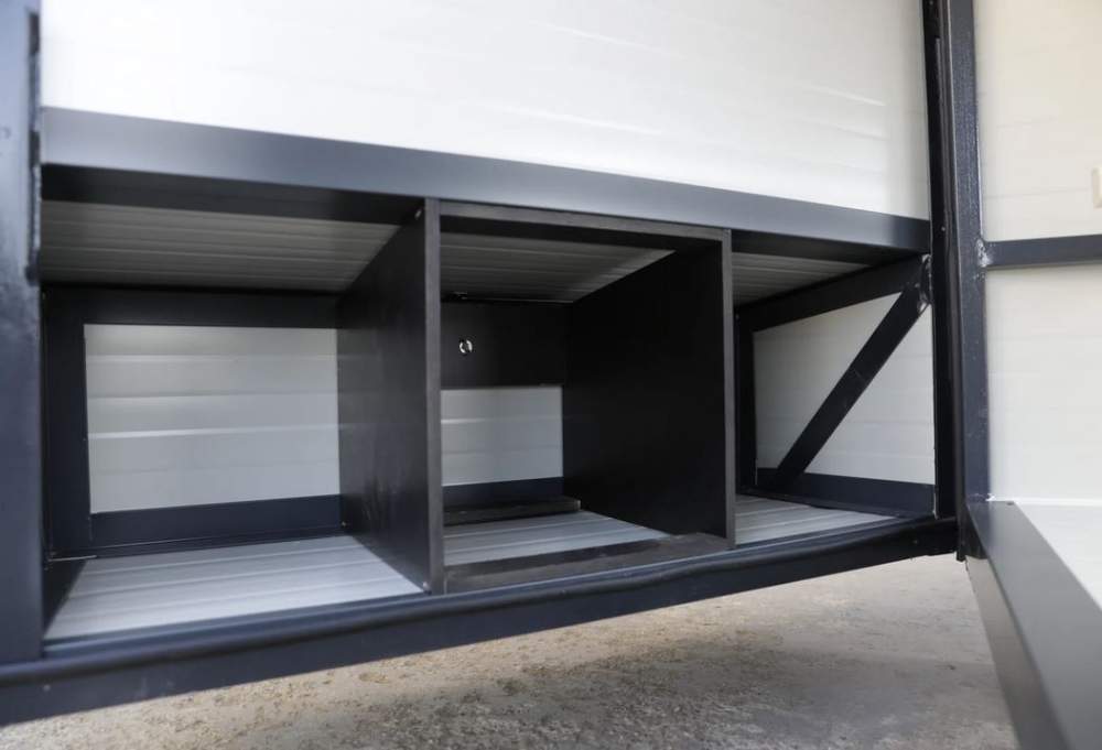 Die Wände bestehen aus 40 mm Sandwichplatten in RAL Holzoptik Buche, die Kanten in RAL 7016 Anthrazitgrau ( verzinkte Stahlkonstruktion Aufpreis 250,00 € )