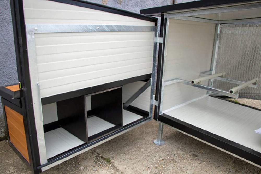 Nistkasten im Seitentür eingebaut ausklappbar. Maße Nistkasten außen: 106 cm x 37 cm x 42cm Innen: 98 cm x 33 cm x 38cm