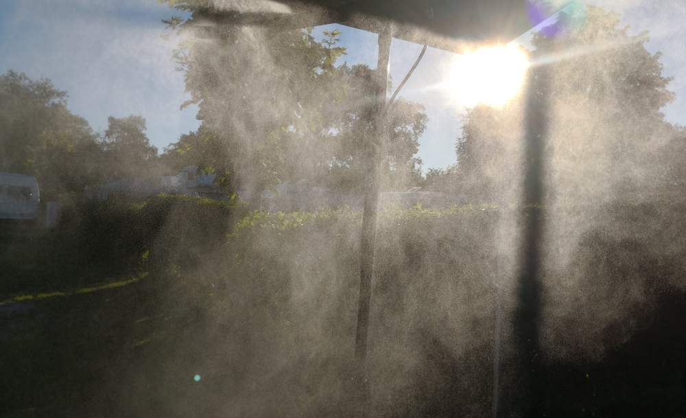 Nebelkühlungen kühlen, wenn sie richtig eingestellt sind, dafür ist die Feinheit der Tröpfchen und deren Verteilung ausschlaggebend. Dies bedingt auch den geringen Wasserverbrauch.