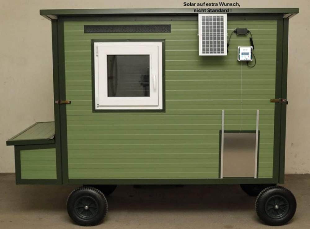 Angebot gilt ohne automatische Hühnerklappe und ohne Solar. Bei Bedarf unbedingt sofort mitbestellen als 2. extra Bestellung, damit die Klappenöffnung in den Stall, entsprechend der gewählten Größe, eingebracht werden kann.