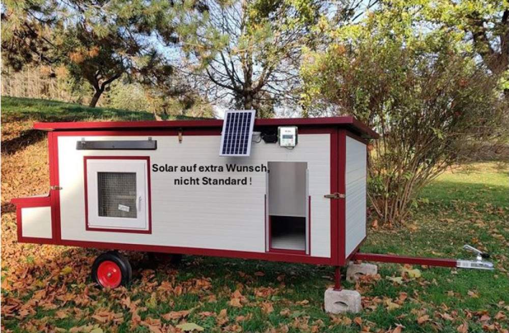 Angebot gilt ohne automatische Hühnerklappe und ohne Solar. Bei Bedarf unbedingt sofort mitbestellen als 2. extra Bestellung, damit die Klappenöffnung in den Stall, entsprechend der gewählten Größe, eingebracht werden kann.