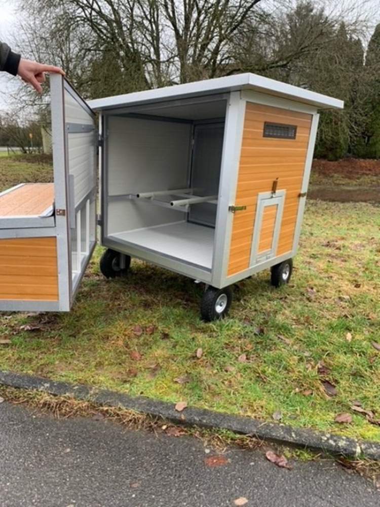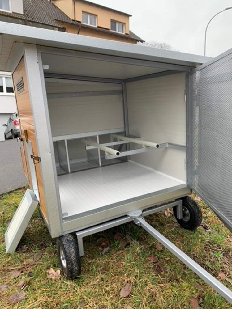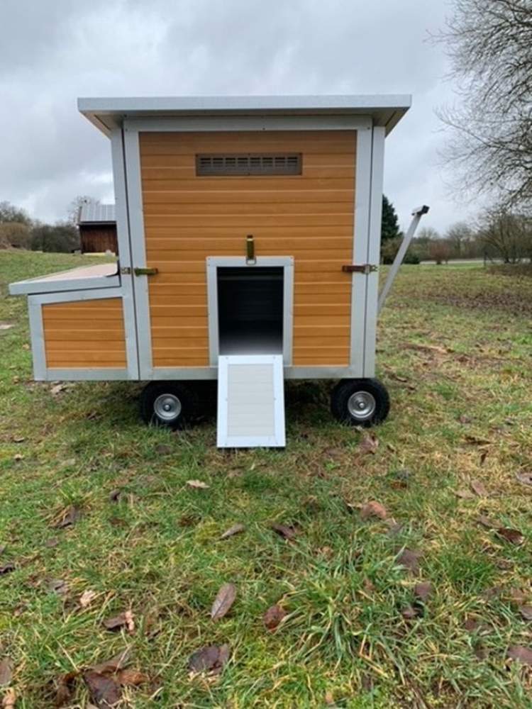 An der vorderen Seite ist eine Hühnertüröffnung.angepasst an Klappen von JOSTechnik