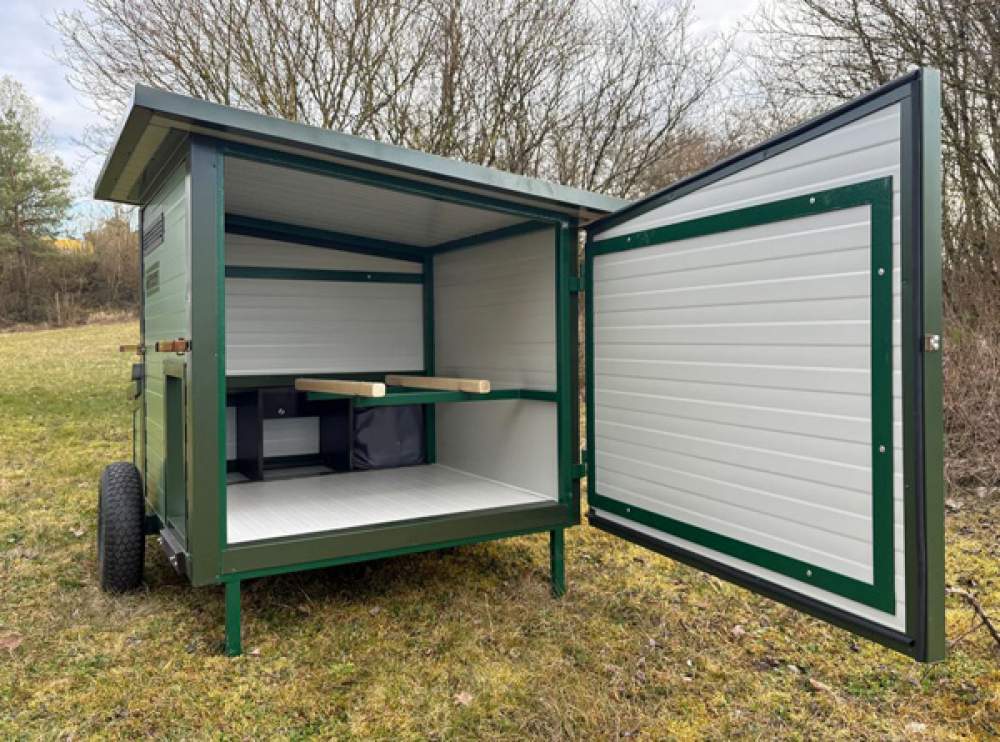 An der vorderen Seite ist ein Hühnertüröffnung, angepasst an Klappen von JOSTechnik
