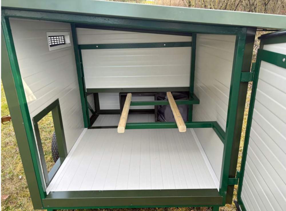An der vorderen Seite ist ein Hühnertüröffnung, angepasst an Klappen von JOSTechnik