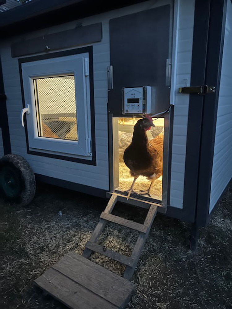 Das Huhn ist ein überaus intelligentes Tier. Bauern in aller Welt haben verschiedene Formen der Hühnerhaltung entwickelt, die dem Geflügel gesunden Auslauf und Möglichkeiten zur Futtersuche bietet. Das mobile oder stationäre Hühnerhaus hat sich in der Haltung hierzulande bewährt. Eine automatische Hühnertür ermöglicht den selbstständigen Ein- und Ausstieg in das Hühnerhaus und steuert automatisch, in Abhängigkeit von Dämmerung, Zeit und Temperatur, das Öffnen und Schließen des Zugangs.